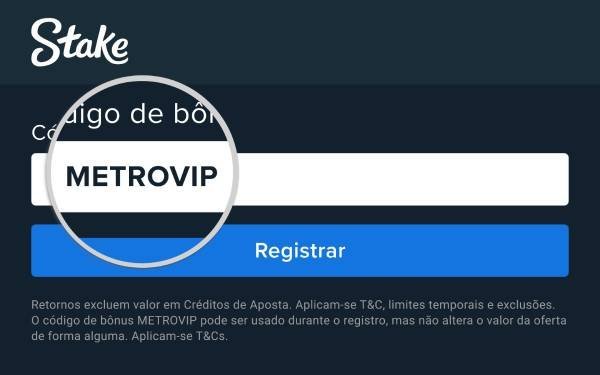 O código promocional Stake 2 que estamos oferecendo aqui é o METROVIP. Assim, ao realizar o seu cadastro na Stake apostas esportivas, você pode usar este código Stake para curtir o bônus de boas-vindas.