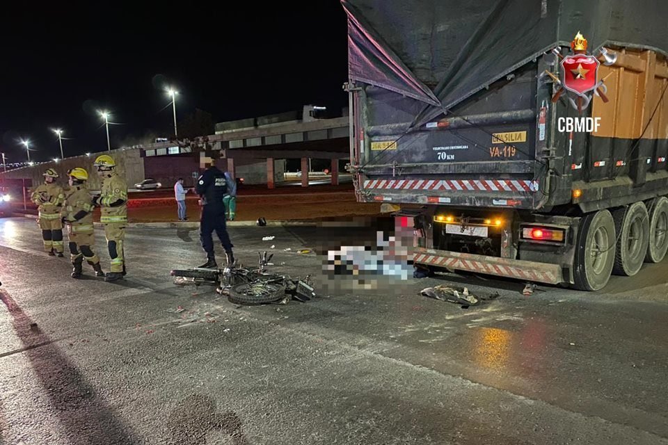 O Corpo de Bombeiros Militar do Distrito Federal (CBMDF) acompanhou a ocorrência com 12 militares. Ao chegar, a equipe encontrou a motocicleta caída e o condutor dela debaixo do caminhão, sem sinais vitais e bastante ferido.