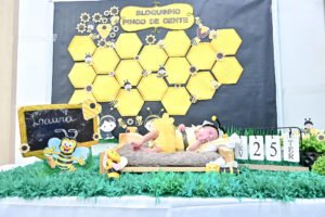 Olhinhos entreabertos, boquinhas com sorrisos discretos e alguns enfeites brilhosos de abelhinhas e zangões marcaram o ensaio fotográfico com tema...