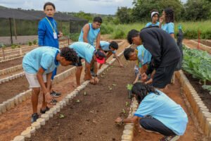 Estudantes do Centro de Ensino Fundamental Cerâmica São Paulo, em São Sebastião, visitaram, nesta terça-feira (25), a horta comunitária do...