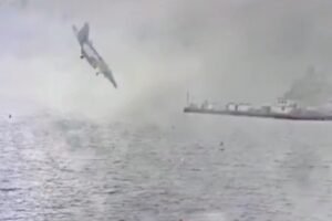 Imagens do jato da Marinha dos Estados Unidos que caiu no mar perto de San Diego, Califórnia, nessa quarta-feira (12/2),...