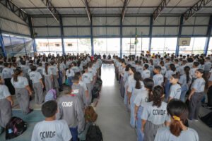 Estudantes do colégio cívico-militar CED 308 do Recanto das Emas retornaram às aulas com entusiasmo, sendo recepcionados por personagens icônicos...