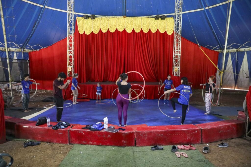 Atenção no picadeiro, é hora de oficina! Por trás da lona do Circo Vitória, no Gama, crianças e adolescentes desbravam técnicas da arte milenar circense. Bambolê, cama elástica, malabares, lira, slackline, tecido e trapézio são as opções ofertadas gratuitamente no contraturno escolar para a comunidade.