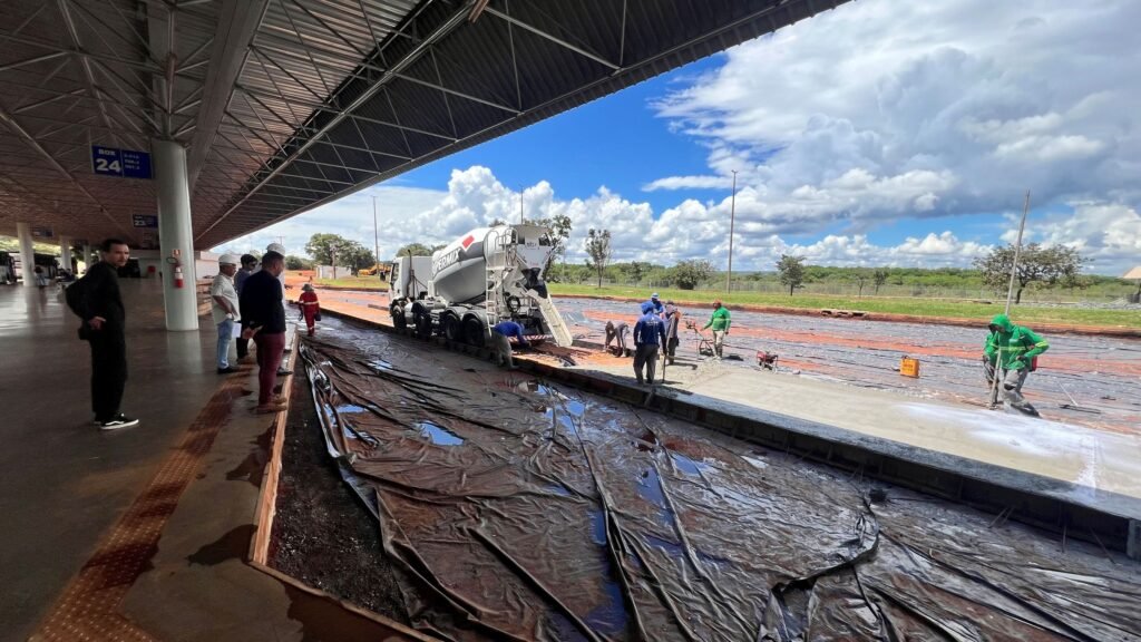 O novo pavimento de concreto trará benefícios a longo prazo para a estação, substituindo a antiga estrutura de piso intertravado, que já não suportava adequadamente o tráfego intenso de ônibus. O concreto utilizado nesta obra conta com fibras sintéticas, tecnologia que confere ainda mais resistência ao pavimento. Esse mesmo tipo de concreto também está sendo aplicado na pavimentação do trecho 6 da Estrada Parque Indústrias Gráficas (Epig).