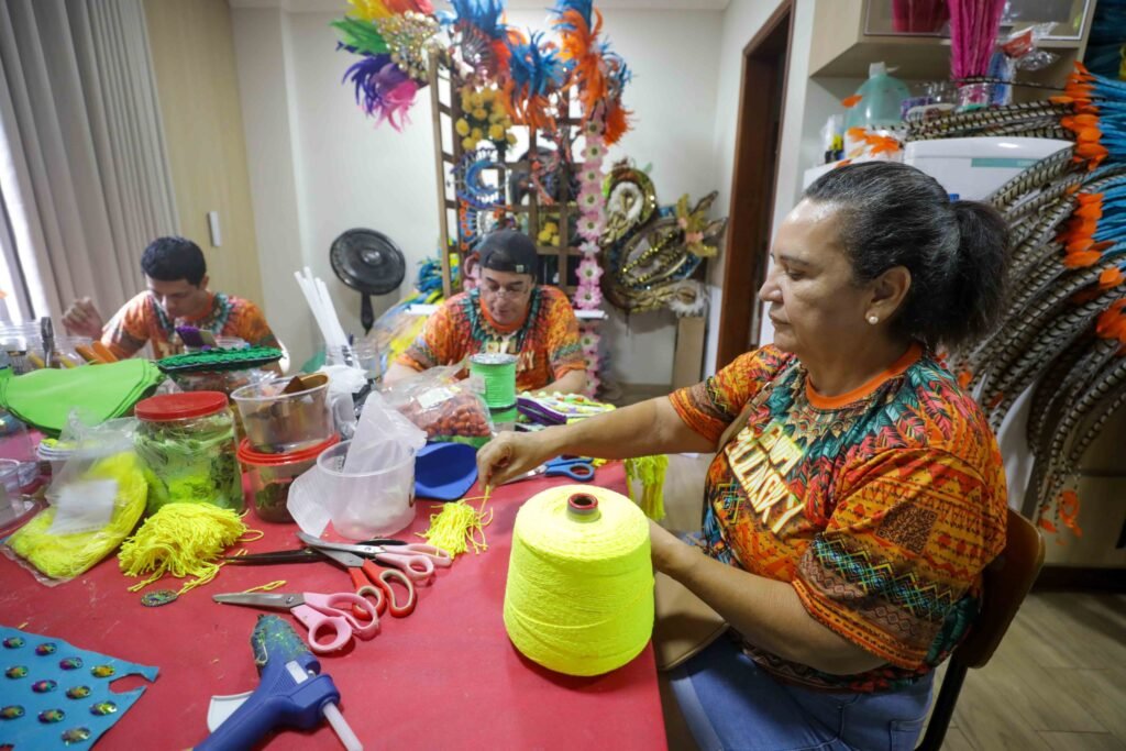Andreoni Cavalcanti, fundador do Grupo Pellinsky e coordenador-geral das oficinas: “Serão cerca de 300 figurinos em todo o festival, mostrando a riqueza cultural do nosso país, e elementos de outros países também, como a cultura portuguesa e africana”