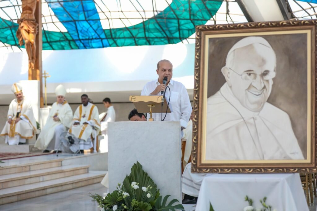 O governador Ibaneis Rocha e a primeira-dama Mayara Noronha Rocha prestigiaram a missa de aniversário da capital e lamentaram a perda do pontífice, com quem tiveram a oportunidade de conhecer e encontrar em duas oportunidades em visita ao Vaticano, em Roma, na Itália.