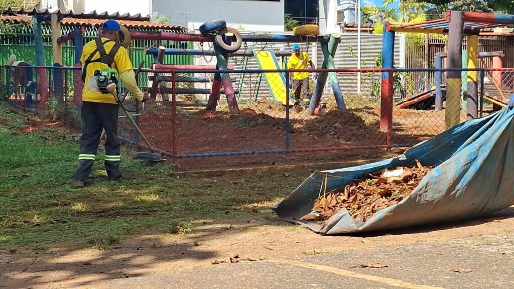 A força-tarefa envolve lavagem de brinquedos, remoção de entulho, varrição, capina, roçagem do mato e retirada de galhos e folhas. A medida visa trazer mais conforto e segurança para as crianças, além de evitar a proliferação de insetos e animais peçonhentos como escorpiões.