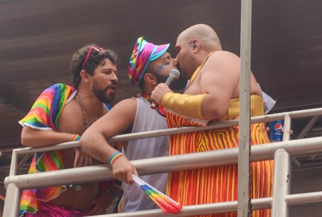 “Meu marido me apoia beijando na boca, também. Então, vai se f*der quem está me julgando”, disparou ele em meio à multidão que curtia o pré-carnaval da avenida Faria Lima.