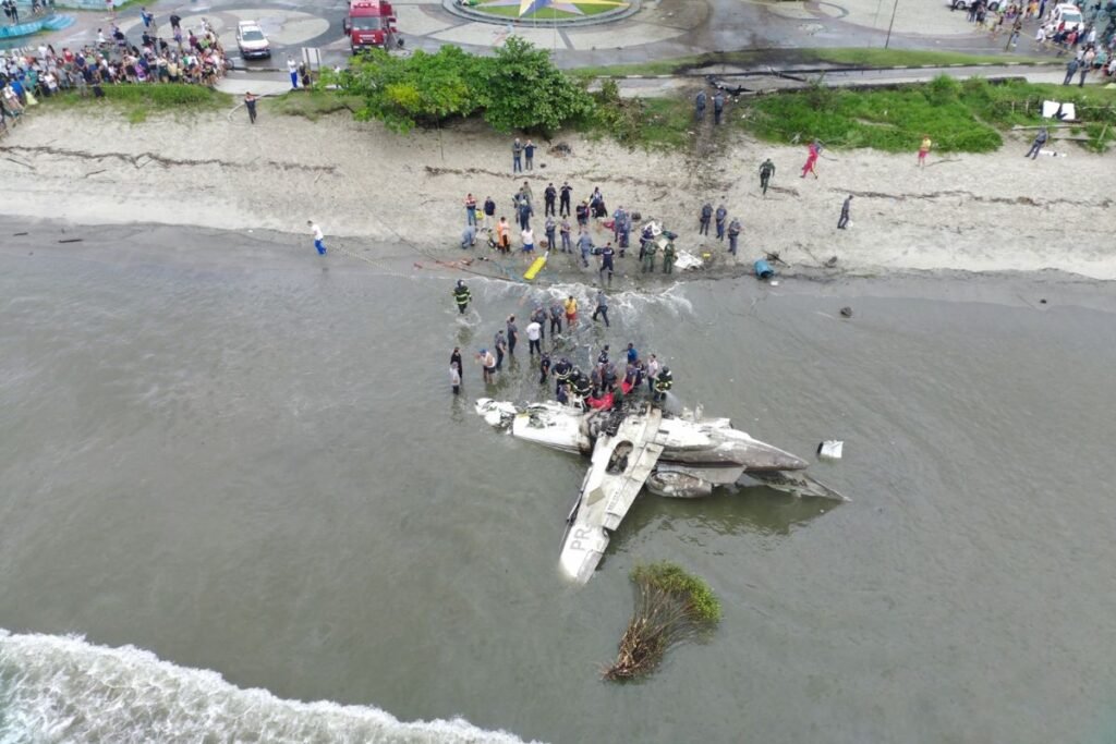 O avião de pequeno porte explodiu na praia do Cruzeiro, após sair da pista do aeroporto e seguir em direção ao mar.
