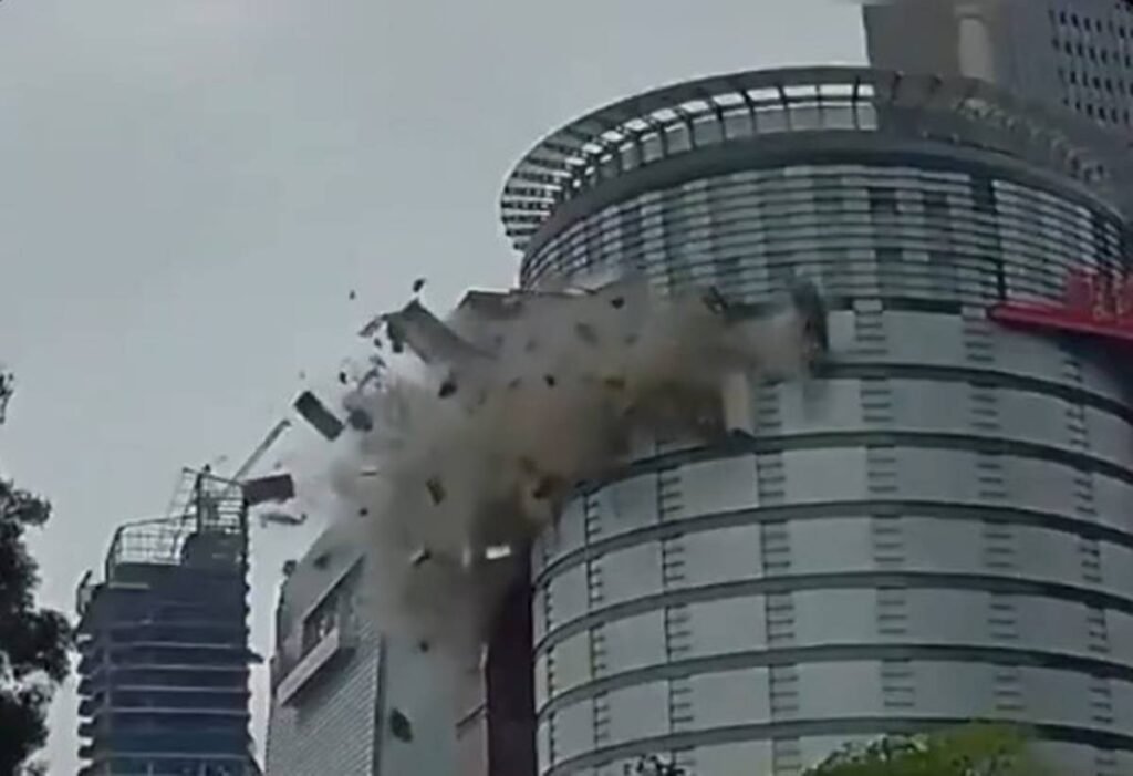 Imagens postadas nas redes sociais capturaram a magnitude da explosão, com painéis e destroços da fachada do prédio indo pelos ares, seguidos por um estrondo enorme.